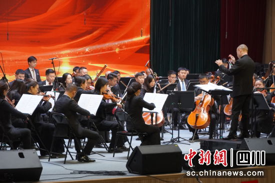 中新网四川新闻12月7日电 弦声激荡的《红色娘子军组曲》、燃烧斗志的《白毛女组曲》、勾画激情岁月的《觉醒年代》……12月6日,一首首红色经典曲目在郫都一中演艺厅回响。四川爱乐乐团以每一个音符、每一段旋律的精彩演绎,呈现出一场传递红色文化的高水准音乐盛宴,现场观众以音乐为介,感受红色文化的深厚内涵,领悟红色历史的文化精髓。