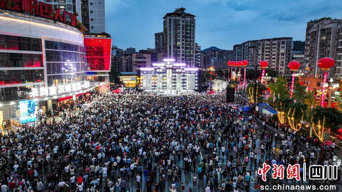 演唱会汇聚了黑龙、大壮、雪十郎等6位知名艺人及40位网络达人,总粉丝量超1亿。据抖音平台统计,“宣汉群星演唱会”相关话题三次冲上热搜,改编版“宣汉不一样”播放量达8.1亿次。线上热度迅速转化为线下动能:两场演唱会吸引近10万人次涌入巴人广场,周边商户营业额翻了三倍,全县住宿“一床难求”。