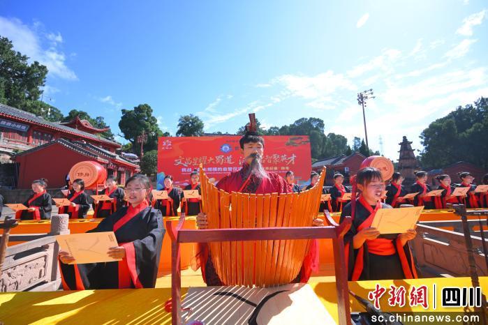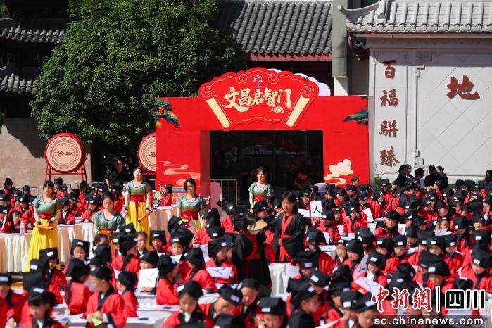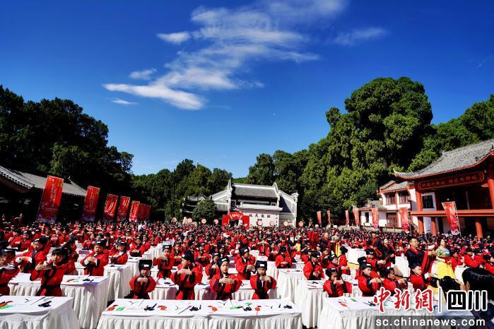 中新网四川新闻10月13日电 (刘晓东)10月13日,以“文昌星耀大蜀道·汉服启智聚英才”为主题的“文昌开笔礼”千人开智大典在绵阳梓潼七曲山震撼上演。1200余名学子身着传统汉服,共同挑战“最大规模的启智仪式”吉尼斯世界纪录™称号,以庄重典雅的仪式为中华传统文化写下生动注脚。