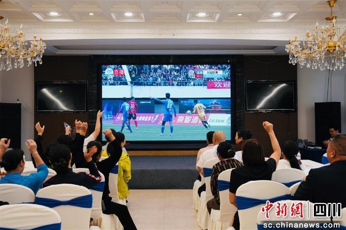 “‘川超’太火爆了,没有抢到票,刚好住的酒店里就有现场直播,就和朋友在这里看比赛。”市民冯鹏说道。