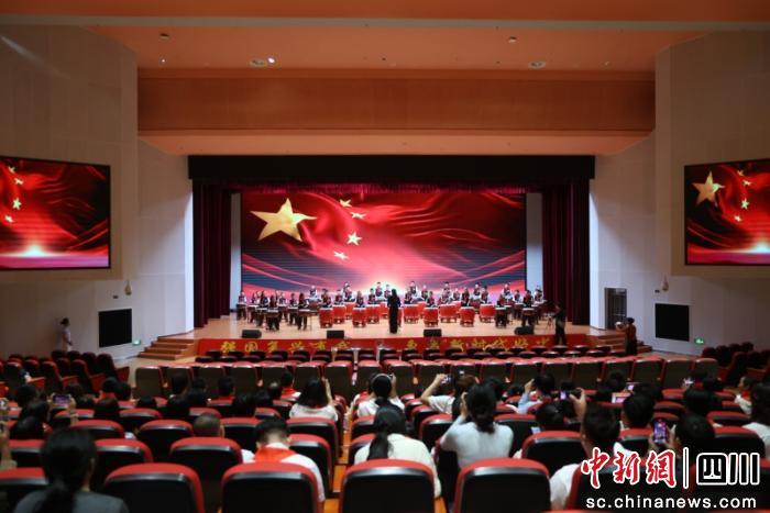 活动在一曲《鼓乐颂党恩》中拉开序幕,来自宜宾市中山街小学校的同学们展现了少先队员昂扬向上的精神风貌。活动现场举行少先队新队员入队仪式,来自宜宾市人民路小学校的30名少年儿童通过规范的仪式流程,伴着铿锵有力的誓词光荣地加入了中国少年先锋队。随后,三名少先队辅导员进行了红领巾宣讲,引导少先队员传承好红色基因,传承好中华文脉,传承好奋斗精神。现场还为宜宾市首批2个少先队名师工作室举行授牌仪式。