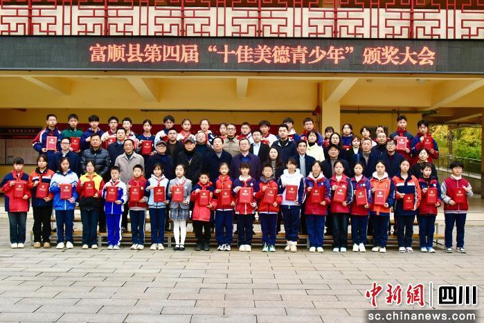 中新网四川新闻12月12日电 (刘刚 兰自奎 邱晓)近日,自贡市富顺县第四届“十佳美德青少年”颁奖大会,在安和实验学校弘雅厅举行。本次活动由富顺县育才教育基金会与富顺县教育体育局联合主办,以“党建带团建”为引领,深入贯彻社会主义核心价值观,弘扬中华民族传统美德,助力“四川文化教育强县”建设。