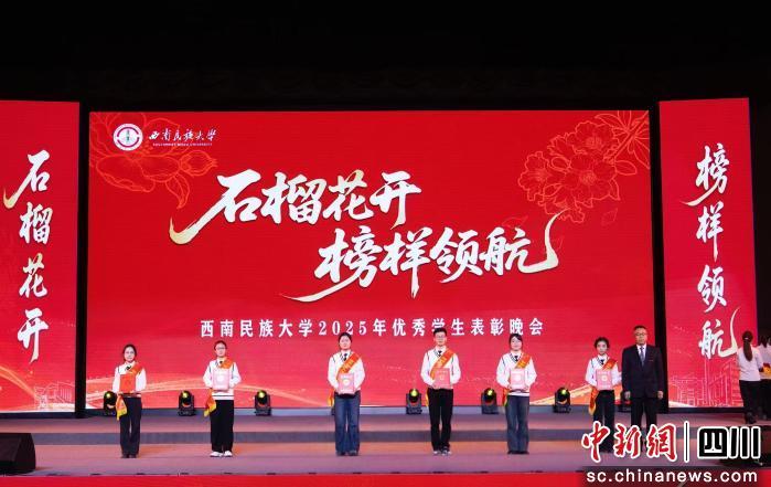 中新网四川新闻12月13日电 西南民族大学2025年“石榴花开榜样领航”优秀学生表彰晚会12日晚在成都举行。西南民族大学校党委副书记、校长王永强及西南民大各部门各单位负责人、师生代表、家长代表3000余人共赴盛会。
