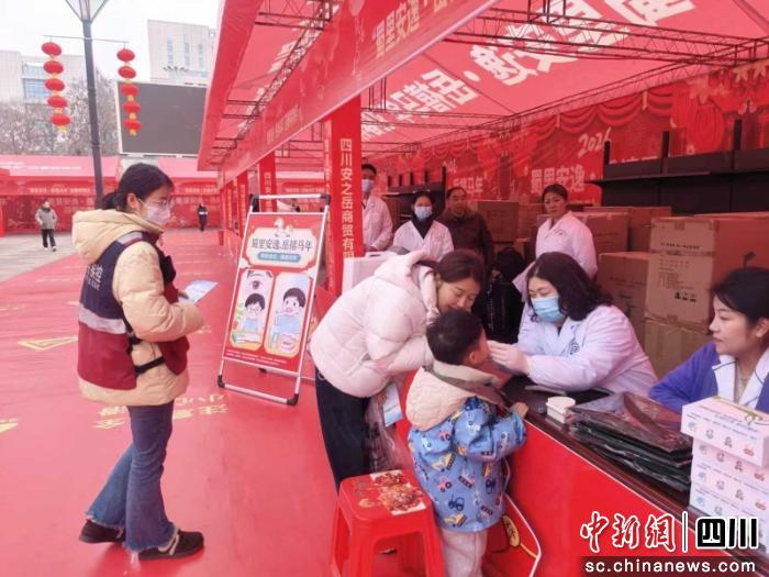 在“蜀里安逸·岳禧马年”迎春购物月主会场,近200个展位涵盖本土农产品、非遗产品、日用百货、特色小食的同时,同步设置房交会专区、春风行动招聘区、健康服务专区、普法宣传专区。15家优质房企推出新春置业优惠,120余家企业提供超10000个就业岗位,中医义诊、健康知识宣讲、法治宣传等服务同步开展,形成“求职+购房+购物+康养”的消费闭环。