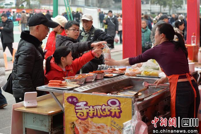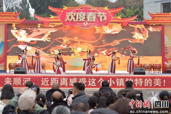 当日上午,开场鼓舞《骏马奔驰保边疆》激情上演,精彩文艺演出陆续登场。在乡村振兴助农专区,顺河镇的银丝面、天冬等农特产品与远觉镇的辣椒、泡菜同台亮相,市民游客穿梭于各个摊位间,将地道川渝风味装进年货篮,为新春佳节增添一份“舌尖上的仪式感”。