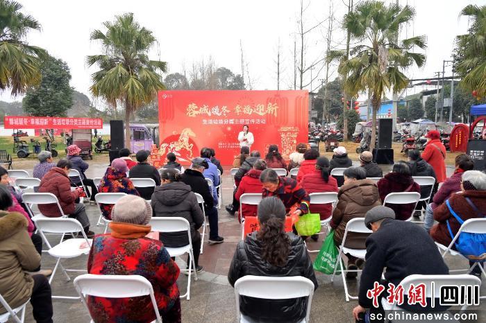 中新网四川新闻2月9日电(陈昱升)9日上午,成都市温江区和盛镇开展“蓉城暖冬 幸福迎新”生活垃圾分类主题宣传活动。将绿色环保理念、文明新风倡导与新春民俗融合,以民俗游园、趣味互动的形式,让辖区居民在欢声笑语中学习分类知识。本次活动由温江区和盛镇人民政府主办,和盛镇综合执法协调办承办,吸引辖区300余名居民现场参与,让垃圾分类知识走进千家万户。