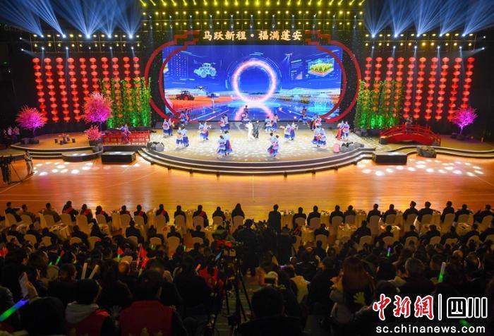 中新网四川新闻2月10日电 (周亮)近日,一场汇聚本土艺术精华的大型文艺汇演在蓬安县文体中心精彩上演。作为“我们的节日·春节”主题活动的重头戏,这场“马跃新程·福满蓬安”新春文艺汇演吸引了来自社会各界的广泛参与。