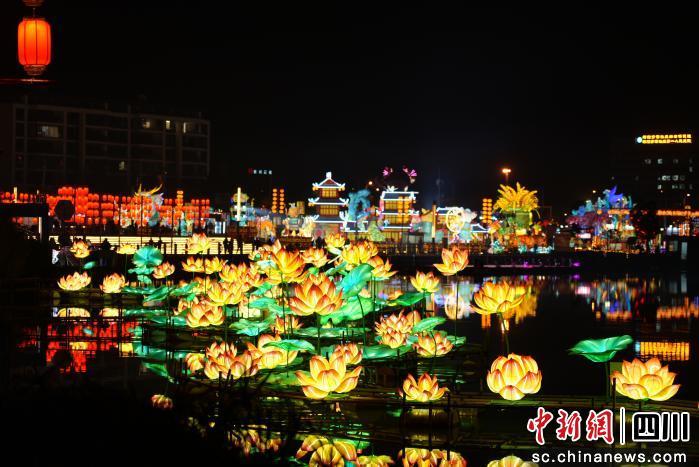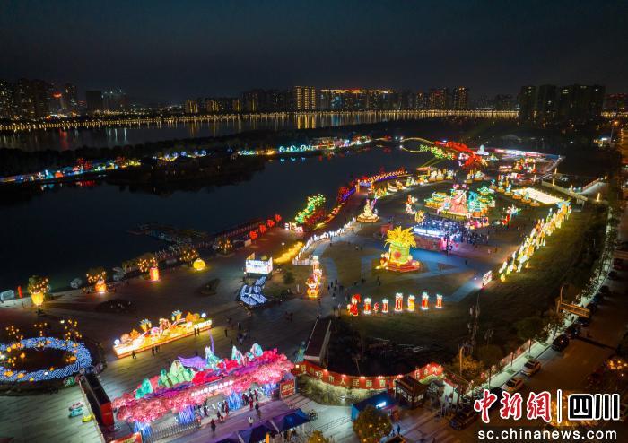 中新网四川新闻2月12日电 (李睿)近日,在绵阳市游仙区小枧生态湿地公园,2026年绵阳新春灯会正式亮灯迎客,为城市夜色铺开一幅璀璨流动的光影画卷。