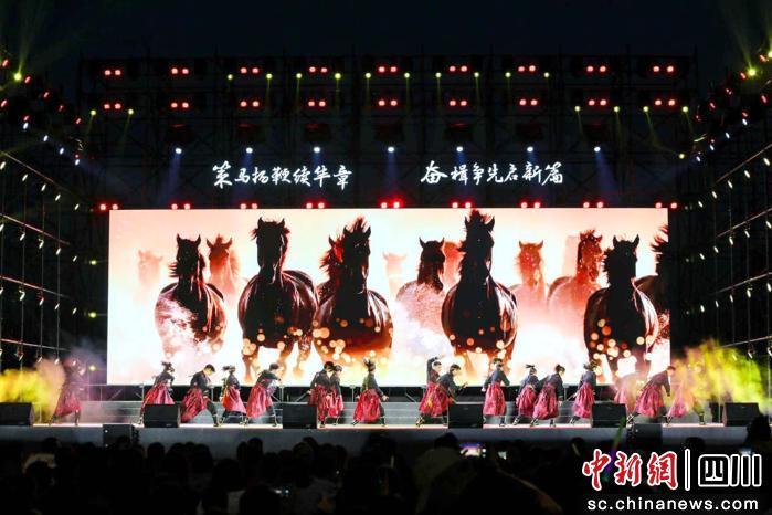 中新网四川新闻2月12日电 (刘忠俊 马诗雨)2月11日晚,眉山市彭山区以“策马扬鞭续华章·奋楫争先启新篇”为主题的新春文化系列活动正式启幕。活动将持续至2月19日,通过文化展演、科技光影、便民市集等多种形式,为群众及游客打造了一场兼具年味与质感的新春盛宴。