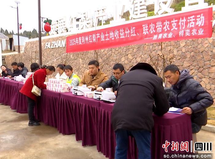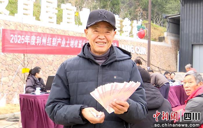 中新网四川新闻2月12日电 (徐咏秋 张文良)2月12日,广元市利州区龙潭乡金鼓村欢声阵阵,一场红梨产业土地收益分红大会在这里举行。百余名村民代表现场领取了土地租金和务工工资,在春节前分享到一份沉甸甸的产业“年终奖”。
