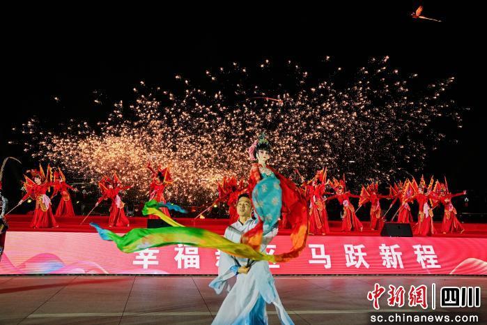 中新网四川新闻2月15日电 2月14日晚,天府新区天府国际会议中心,一场以“公园城市的美好生活·幸福新区·马跃新程”为主题的新春群众性文化活动在这里举行。整场晚会以沉浸式国风巡游暖场,通过四大篇章的有机衔接与层层递进,如同一幅流动的锦绣画卷,全景式、艺术化地展现了天府新区自践行公园城市理念以来所取得的丰硕成果,为现场观众奉献了一场融合传统与现代、贯通科技与人文、兼具宏大叙事与温情脉脉的新春文化盛宴。