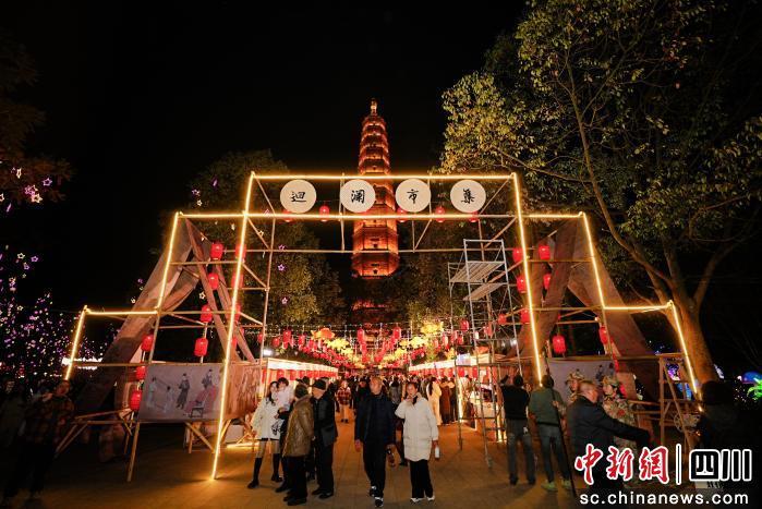 中新网四川新闻2月15日电(肖茹月)“快看,亮了!”伴随着一声声兴奋的欢呼,14日晚上6点,2026临邛古城灯会准时亮灯。迴澜塔片区仿佛被星河倾泻般的光影笼罩,当晚,1500架无人机划破夜空,以巍峨古塔为景,编织出邛崃2300年的建城史,将连接古今的光影景象呈现给每一位观灯游客。