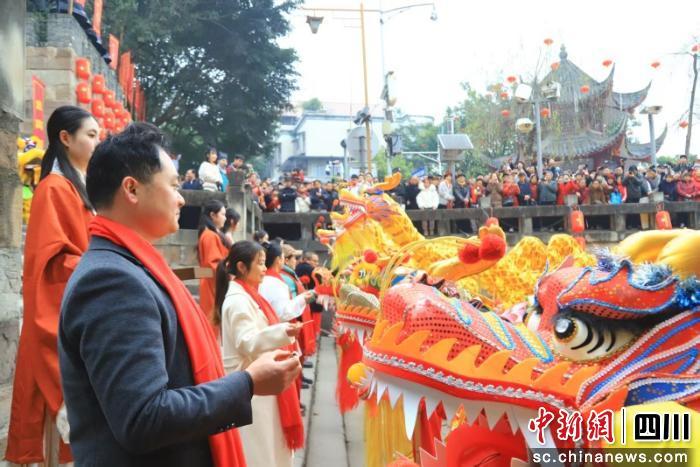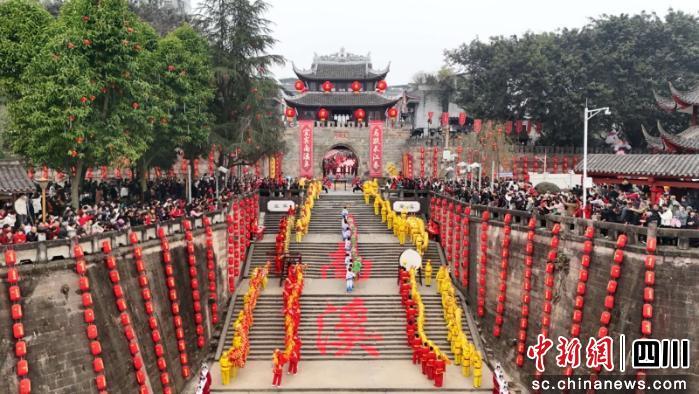 中新网四川新闻2月17日电(毕泽钰 钟雪珂 冯春)马跃长江春,古门迎福至,17日上午,宜宾南溪文明门喜气盎然,“马跃长江春·宜宾南溪年”开门迎福仪式在此热闹举行,600余名参演人员欢聚古门之下,以古仪寄心愿,以民俗贺新春,为当地百姓送上满满福泽。