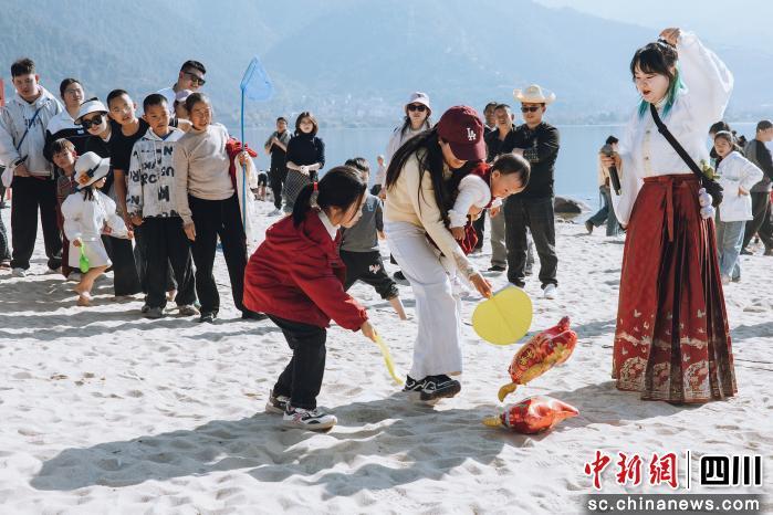 中新网四川新闻2月17日电 2月17日正月初一,随着新年的第一缕阳光洒向邛海湖面,西昌金粼沙滩瞬间化为一片欢乐的海洋。一场别开生面的“金粼踏浪·音贺新春”沙滩音乐快闪秀在此生动上演,正式拉开了西昌市2026年新春文化惠民系列活动的序幕。