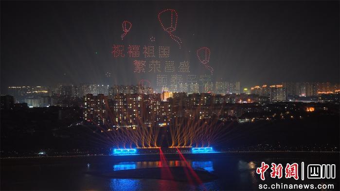夜幕降临,滨江公园区域成为欢乐的海洋。非遗技艺“打铁花”惊艳亮相,铁花飞溅如星河落岸,与火龙飞舞表演交相辉映;凤凰、天马造型飞行器凌空翱翔,灵动身姿勾勒出唯美画面。随后的无人机编队表演,更是将新春氛围推向高潮。800架无人机腾空而起、精准移动,在夜幕中呈现出一幅幅璀璨的光影画卷——“祝福祖国繁荣昌盛国泰民安”“加快建设市域副中心”“山歌响起的地方资中欢迎您”。每一次的阵型变换,每一次的光影流转,都引来现场阵阵欢呼,快门声、赞叹声此起彼伏。