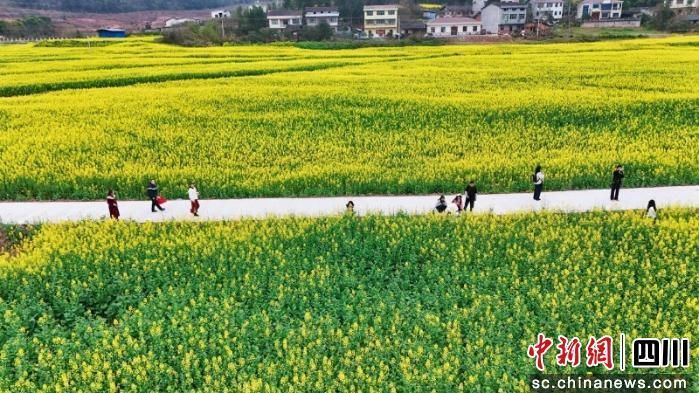 中新网四川新闻3月9日电(潘政吉 张佳欣)春风送暖,沃野鎏金,步入三月,安岳县51.43万亩油菜花次第盛放,连片金黄铺满丘陵田间,与错落村舍、蜿蜒道路相映成趣,勾勒出一幅生机盎然的春日田园画卷。这片金色浪潮不仅带来了视觉的盛宴,更涌动着产业增效、乡村焕新的蓬勃活力。