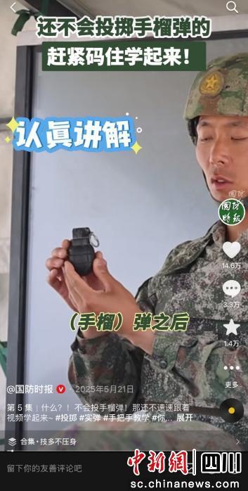 中新网四川新闻3月10日电(陈平)近日深夜十点,网友一条私信火急火燎砸过来:“手榴弹投掷我已经练熟了,简历该往哪投?在线等,挺急的!”小编秒回:“安排!链接这就甩你,冲这儿投,稳得很!”这样有趣的互动,在国防时报抖音号里早就成了日常,作为全国唯一公开发行的地方军事类国防教育和退役军人系统报纸的官方抖音号,从零起步才一年多,就圈了200万粉丝,其中一半以上都是20岁左右的年轻人,靠着硬核又暖心的内容,让国防教育的正能量和年轻人来了一场超甜的双向奔赴。