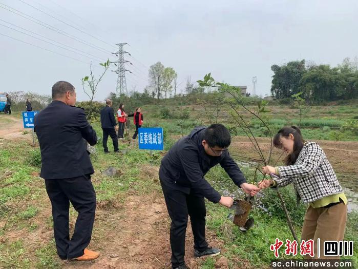 中新网四川新闻3月12日电 (海迪)3月12日,正值第48个植树节,泸州市江阳区委统战部组织机关干部职工走进况场街道游湾村,与村干部群众一同开展义务植树志愿服务活动,栽种优质柑橘树苗,以实际行动为美丽家园增添新绿,携手描绘共建共治共享的绿色画卷。
