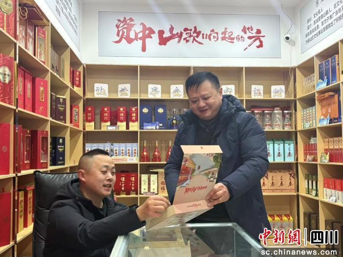 中新网四川新闻3月13日电(倪君 吕俊良)近日,在内江资中县银山镇,瑞亭副食店打卡墙前暖意融融,一群年轻人正举着手机同“资中文创地图”同框拍照,店内顾客正向老板问询着血橙特产与君子泉的礼盒搭配建议。