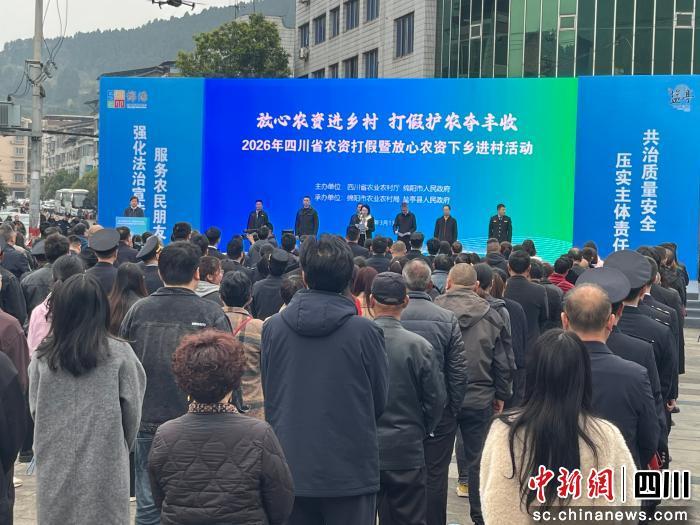 中新网四川新闻3月13日电 (衡廷凡)当前正值小麦拔节、油菜开花的关键农时,也是农资购销旺季。为保障农民群众用上放心种、放心药、放心肥,3月13日,四川省2026年农资打假暨“放心农资下乡进村”活动在绵阳市盐亭县富驿镇五马广场正式启动,标志着全省春季农资打假专项行动全面展开。