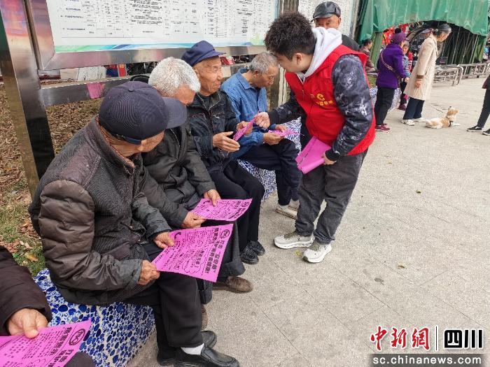 广场一角,身着红色志愿服的普法宣传员许鹏正俯身与老人亲切交谈。深知群众疏离生硬法条,他特意摈弃专业术语,用地道四川话将晦涩法条拆解成邻里案例。