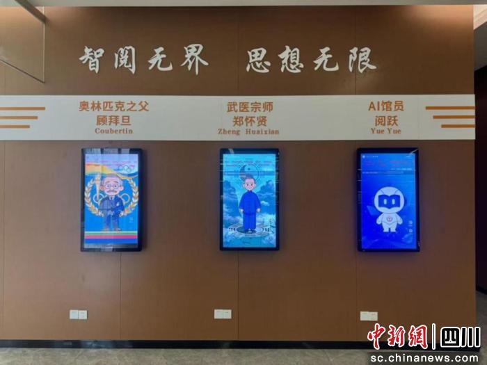 图书馆大厅核心区域的“智悦无界、思想无限”名人对话场”,运用AI数字人技术请来了奥林匹克精神的开创者“顾拜旦”、我国著名的武医宗师“郑怀贤”及图书馆智慧代言人“阅跃”。读者可以与体育先驱探讨现代奥运的起源与价值,听郑老先生讲述运动损伤康复的精要,问阅跃图书馆资源。数据显示,这一场景日均互动超过200次,学生在该区域的停留时长平均提升3倍。这种将静态资源转化为沉浸式互动体验的方式,有效激发了学生的文化认同感,并将这种兴趣直接引至深度阅读与学术探索。