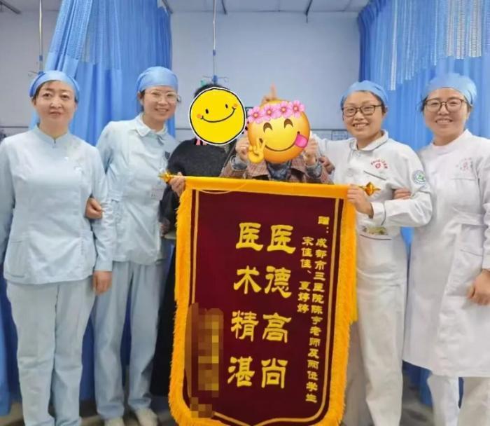 近日,成都市第三人民医院门诊换药室暖意融融,患者及家属送来了写有“医术精湛医德高尚”的锦旗,感谢医护团队两个月来的专业守护与暖心陪伴。
