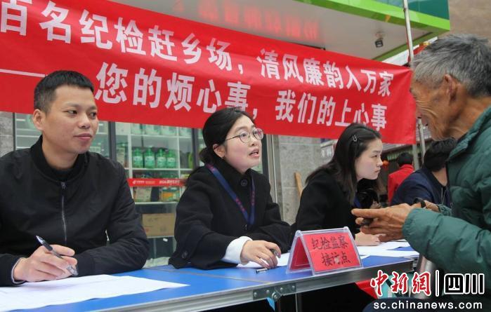 中新网四川新闻3月30日电(何倩)“老乡,您反映的山坪塘租金收入不明的问题,我们会跟镇农业综合服务中心进行核实,很快就给您一个答复!”近日,自贡市荣县纪委监委开展的百名纪检干部“赶乡场、走人户”活动,第一站来到古文镇古文场社区。当天,纪委监委干部一边记录村民杨大爷的疑问,一边现场协调工作人员跟进核查。