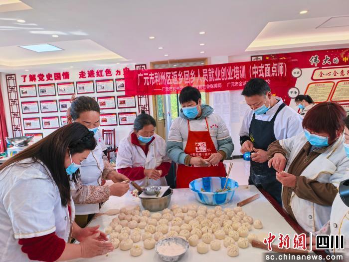 中新网四川新闻3月30日电 (周李昌 冯小珈)“擀面要边擀边转,拿捏好力度,做到中间厚、边缘薄……”3月30日,广元市利州区大石镇光荣村村委会会议室内暖意融融、香气四溢,一场量身定制、惠民利民的中式面点技能免费培训正有序进行。