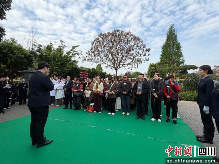 中新网四川新闻4月1日电 (记者 何浠)成都医学院“无语良师”骨灰集体安葬及致敬仪式4月1日在成都天府新区莲花公墓举行,59位无偿捐献遗体用于医学教育的“无语良师”(医学生对“大体老师”的尊称)在此安息。百余名师生代表、捐献者家属齐聚现场,以默哀、献花、诗歌朗诵等形式,缅怀这份跨越生死的无私奉献。