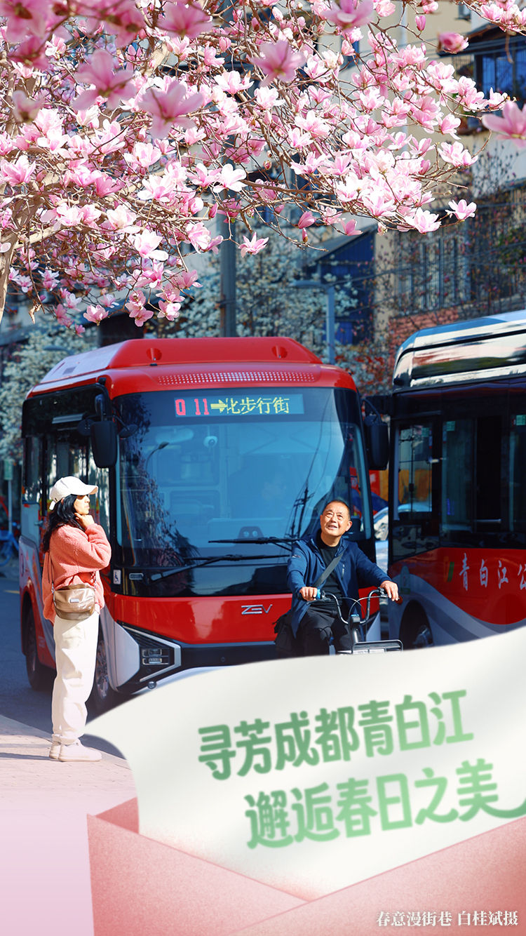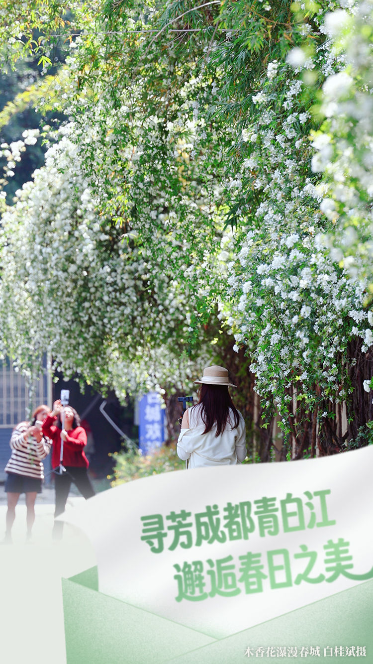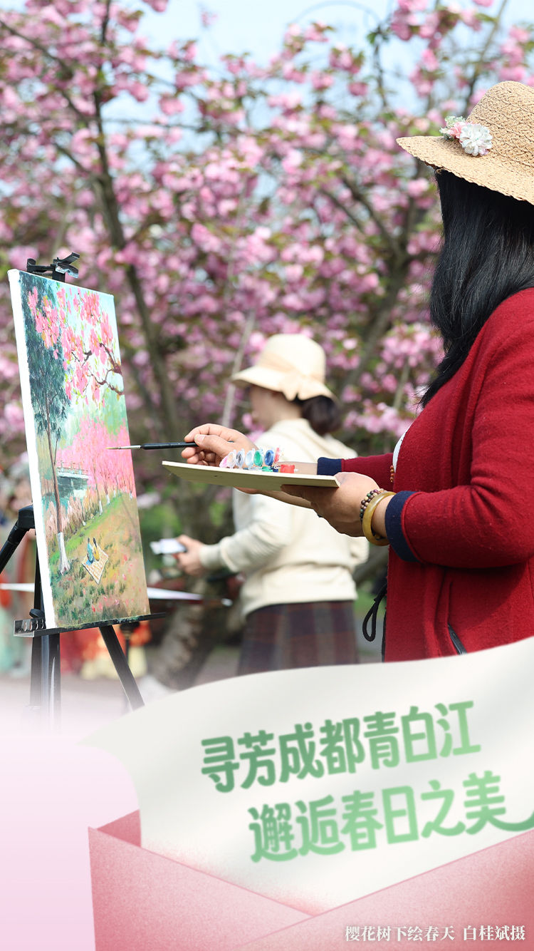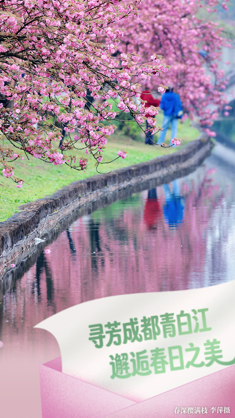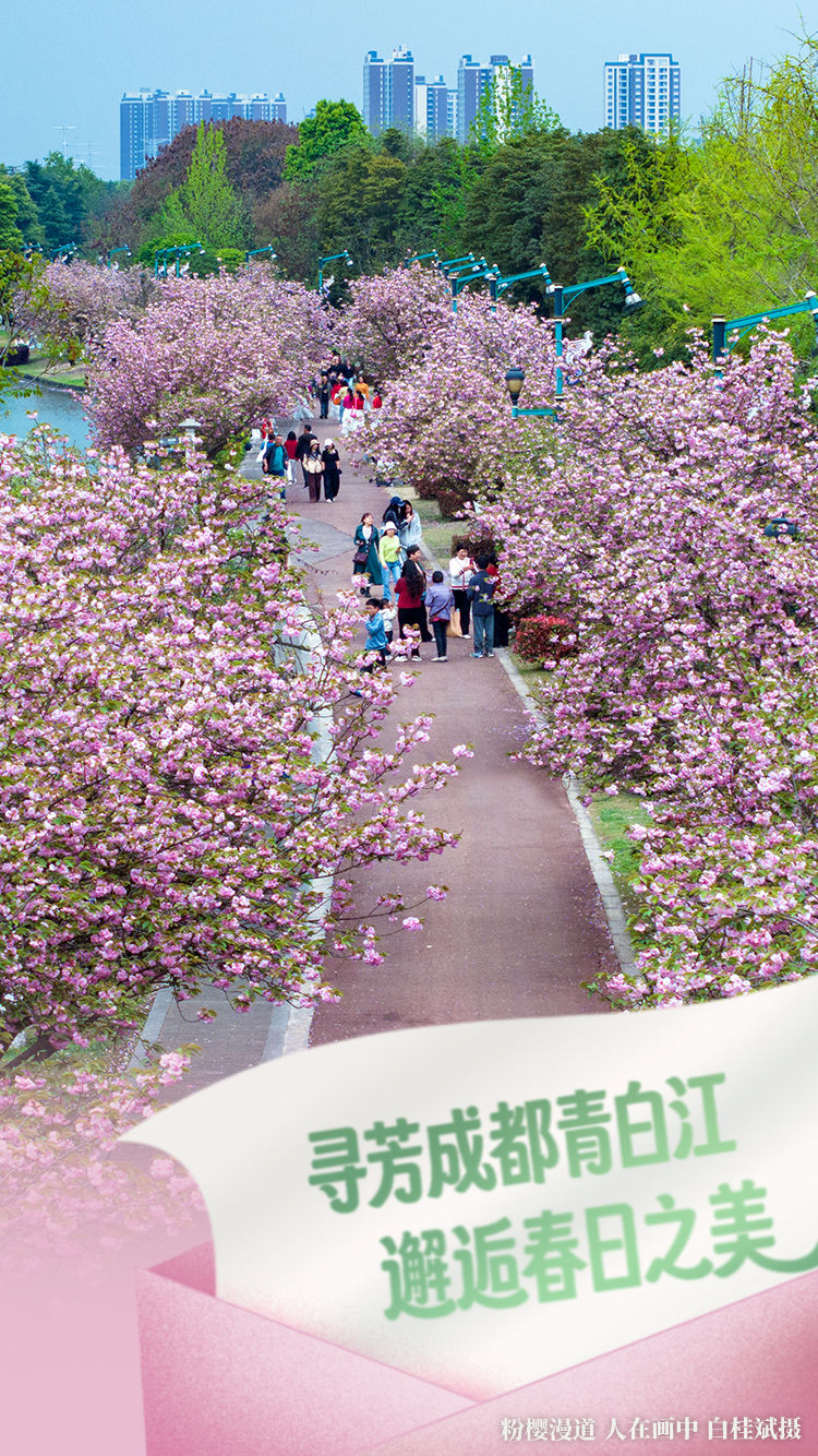 春风拂过青白江,凤凰湖畔万株樱花次第绽放,粉白如云,绵延成诗意花径。在青白江邂逅春日盛景,有缀满枝头的紫叶李,素白清雅,有垂落如瀑的紫藤花,紫雾缭绕,暗香浮动,漫步其间,繁花织锦,尽揽蓉城浪漫。(制图:谭晋豫)