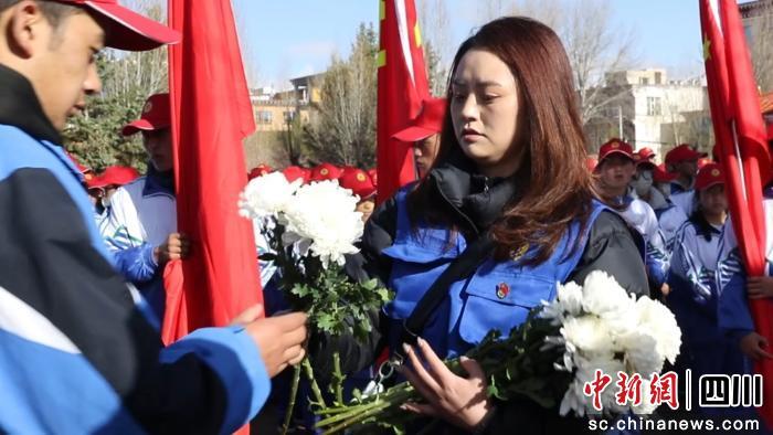 中新网四川新闻4月5日电 (刘忠俊 赖红)清明节期间,甘孜州甘孜县组织开展清明节“缅怀革命先烈·传承志愿精神”祭扫志愿服务活动,千余名干部、志愿者、学生及农牧民群众参与。