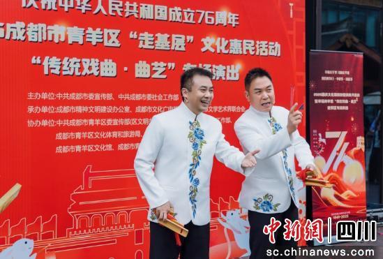 中新网四川新闻10月7日电(吴平华 陈静)近日,从成都市青羊区文化馆了解到,“双节”期间,“幸福青羊里月圆庆华诞”2025年成都市青羊区“走基层”文化惠民活动“传统戏曲·曲艺”走进文殊坊景区,在妙园广场连演两场,让大家在游览景区的同时,免费享受到了高品质的传统艺术盛宴,成为景区里人气十足的文化打卡点。