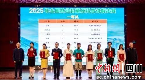 中新网四川新闻12月20日电 2025年全国林业和草原科普讲解大赛18-19日在四川成都成功举行。经过半决赛、决赛的激烈角逐,大赛最终评选出一等奖9人、二等奖14人、三等奖22人,北京市园林绿化局、山东省林业局、四川省林草局等13家单位获优秀组织奖。