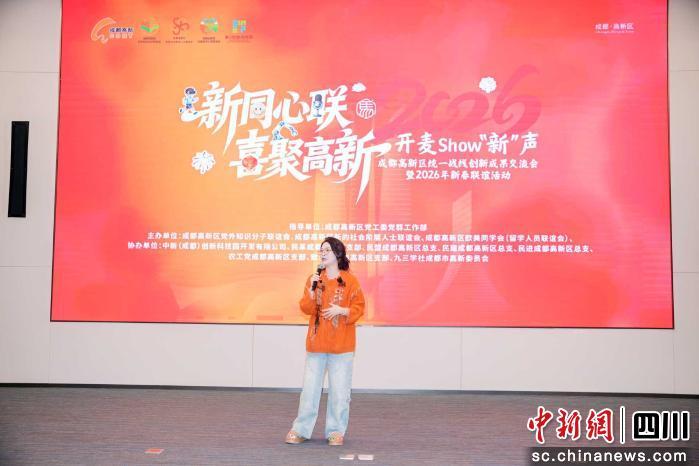 中新网四川新闻2月7日电 2月6日,由成都高新区党外知识分子联谊会、新的社会阶层人士联谊会、欧美同学会(留学人员联谊会)联合主办的“新同心联·喜聚高新”—开麦Show“新”声成都高新区统一战线创新成果交流会暨2026年新春联谊活动举行,省、市、区近百名统战成员参加。