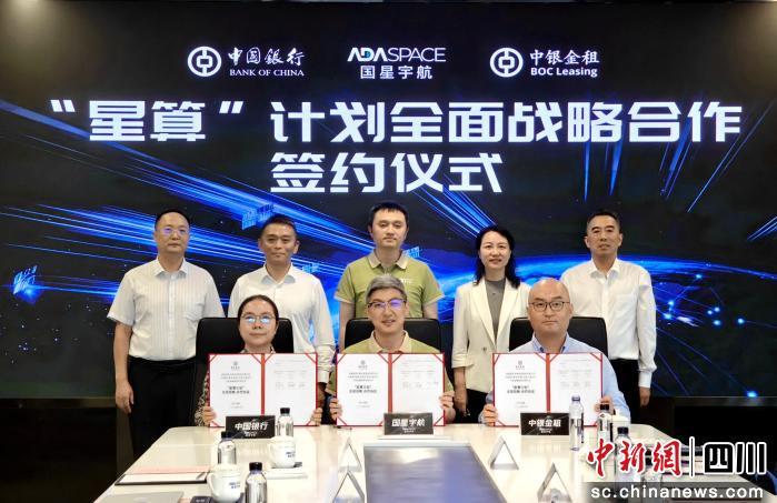 中新网四川新闻10月10日电 为深入贯彻落实党中央决策部署,积极探索金融与科技产业深度融合的新模式,共推商业航天产业高质量发展,9日,中国银行四川省分行联动中银金融租赁有限公司(以下简称中银金租)与成都国星宇航科技股份有限公司(以下简称国星宇航)签署“星算”计划三方战略合作协议。四川中行党委书记、行长林振闽,党委委员、副行长侯建国,中银金租党委副书记、总裁张丽涛,国星宇航创始人、董事长陆川出席签约仪式。