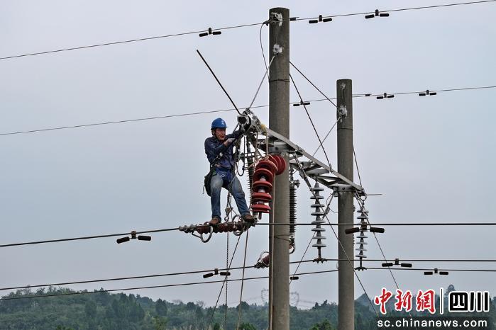 中新网四川新闻10月11日电 (刘忠俊 苟华彬)10月11日,在眉山市仁寿县宝马镇高照村110千伏枣勇线改造施工现场,国网眉山供电公司13名作业人员正有序开展绝缘子更换作业。此次改造将全线61基直线杆塔上的普通瓷绝缘子,统一更换为1200片交流盘形悬式复合瓷绝缘子,旨在进一步提升线路供电可靠性,为即将到来的冬季用电高峰保电工作奠定基础。