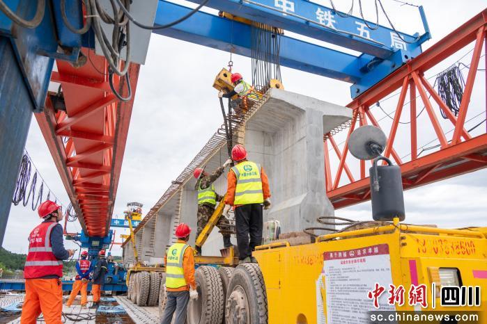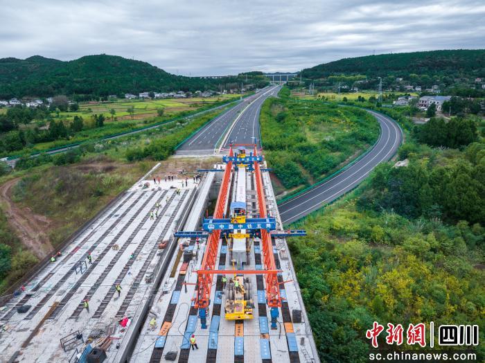 中新网四川新闻10月13日电 (刘晓东 邱雨嫕)10月12日,在绵阳市境内的G5京昆高速广元至绵阳段扩容工程架梁施工现场,随着中铁五局作业人员操控着架桥机将最后一片T梁起吊、平移,最后精准落在牛头河大桥桥台上,标志着G5京昆高速广元至绵阳段扩容工程绵阳段全段桥梁贯通,为实现全线建成通车奠定坚实基础。