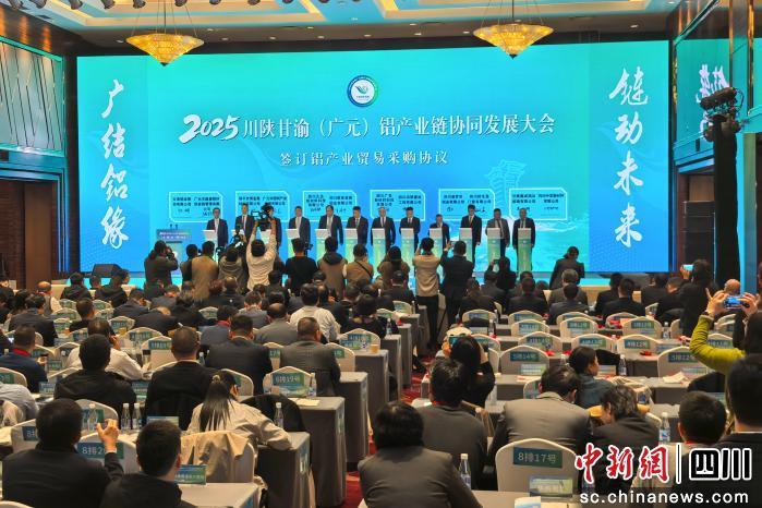 中新网四川新闻11月21日电 (苗志勇)21日,2025川陕甘渝(广元)铝产业链协同发展大会在四川省广元市圆满举行。会上,广元签约项目及协议41个,涵盖铝基新材料加工、贸易、金融服务和物流等多方面,签约金额232.3亿元。