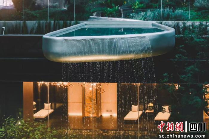 宽约百米的巍巍昆仑门庭界面,瑶池的跌水层层奇幻景深,蓬莱的岛屿漂浮蓬勃海域,还有方寸、星台、尧光等仙圃七庭缔造的微观自然中的灵愈栖所,不仅是景观,更成为东方想象力的当代转译,匠心营造出“可游可憩的仙境园林”。而私域汤泉、悦己女王馆/私董会,恒温泳池、音波疗愈室与私人影院形成完整奢养动线,生命的美学元素在此被精心排列,实现“养身-养心-养神”的体验升维,让“三养一生”奢养生活直抵心灵深处。