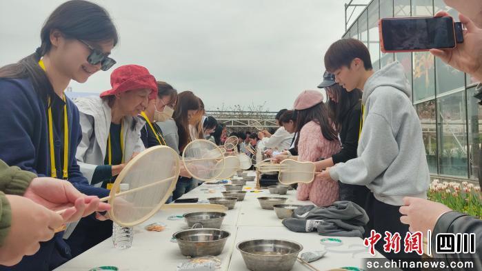 在交流分享环节,两岸青年代表结合自身经历,讲述创业故事,分享对嫘祖精神的感悟。交流间隙,乐队表演、嘉宾才艺展示轮番上演,大家用歌声传递血脉相连的深厚情感。互赠伴手礼环节温情满溢,饱含着对彼此的祝福与牵挂。活动中,大家还分组体验了手工扇制作、心愿花藤寄语等互动项目。