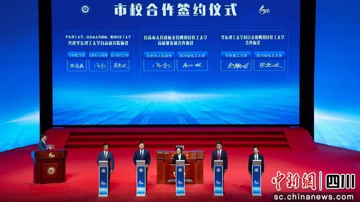 据了解,当天的大会还举行了隆重的签约仪式,标志着学校在校地、校校及产教融合方面开启了新篇章。学校与自贡市人民政府、华东理工大学签署了一系列重要合作协议,包括《自贡市人民政府支持四川轻化工大学高质量发展合作协议》《华东理工大学对口支援四川轻化工大学合作协议》以及三方《共建华东理工大学自贡研究院协议》。