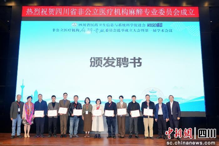 董蜀华在表态发言中明确,将推动麻醉服务实现“有标准、有高度、有人才、有温度”的发展目标。四川省医药卫生信息与系统科学促进会执行会长张立国强调,专委会的成立填补了四川非公医疗机构麻醉学科专业化组织的空白,将有效串联公立三甲资源与基层医疗需求,为区域医疗协同发展注入新动能。中国非公医疗机构麻醉专委会主委姚兰等专家共同为当选副主任委员颁发聘书。