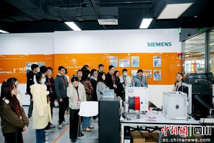 活动首站来到西门子工业自动化产品(成都)有限公司。这家全球首批获世界经济论坛认证的“灯塔工厂”,以集成化生产体系和智能化管理模式,向师生呈现了现代制造业的未来图景。该工厂融合研发、制造和物流,通过高度协同的智能生态体系,实现从订单到交付的全链路数字化,展示了工业4.0理念的本地化探索,让师生直观感受到科技赋能制造业的巨大潜力。