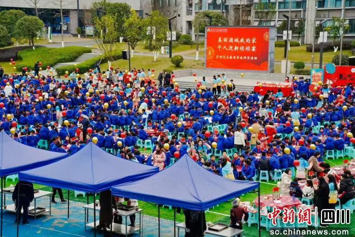 中新网四川新闻12月26日电 (邹立洋)在元旦佳节来临之际,泸州市天立春雨小学以“家乡美食+坝坝宴”为载体,让学生走出课本,将泸州传统坝坝宴搬进校园,沉浸式感受泸州味道与川南民俗,落实“五育并举”,把课堂延伸到生活场景,展现学校“生活即教育”的特色实践,传递有温度、接地气的教育形象。