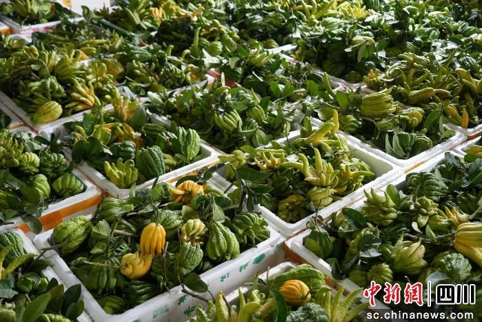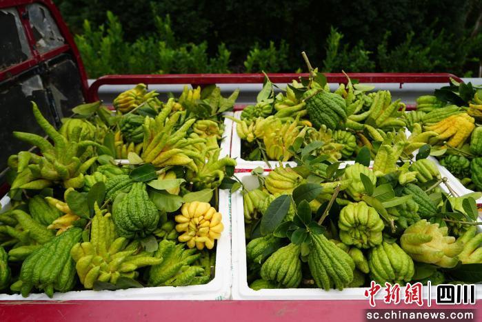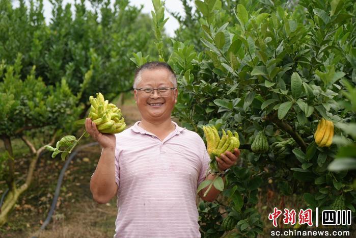 中新网四川新闻10月11日电 (杨勇)10月10日,绵阳市安州区花荄镇金佛手种植基地里,漫山遍野的佛手树缀满深绿、金黄的果实,或舒展如掌或紧握似拳,股股清甜香气随风弥漫。
