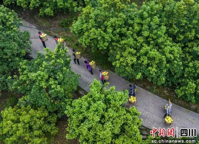 中新网四川新闻10月29日电(吴明辉)连日来,泸州市合江县真龙镇真龙柚熟了,金黄的柚子挂满山间,饱满的果实静待采摘