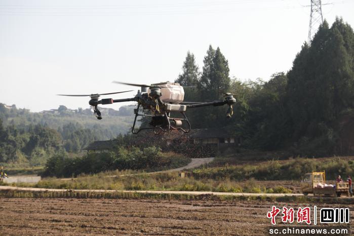 中新网四川新闻11月24日电 (黎涛)“嗡……”伴随着无人机的轰鸣,顺庆区芦溪镇梵殿寺村7组的高标准农田上,农机手曾超正操控设备精准完成小麦播种。屏幕实时显示,4小时作业已覆盖220亩农田——这样的工作量,若采用传统耕作方式,需20名农民连续忙活3天。从“面朝黄土背朝天”到“指尖轻点种良田”,农业机械化正让顺庆的田野焕发新活力,绘就出一幅“农机强、农民富、农业兴”的现代农业新图景。