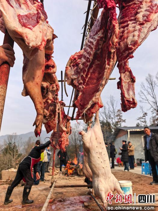 中新网四川新闻1月15日电 (张文良)1月15日一大早,广元市利州区白朝乡观音村还笼着薄薄的雾气,柴家山家庭农场的院子里却已热气腾腾、人声鼎沸。一口大铁锅架在柴火上,锅里奶白色的猪头汤“咕嘟咕嘟”翻滚着,浓郁醇厚的香气直往人鼻子里钻。