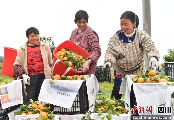 中新网四川新闻3月20日电 (庞圆斌)三月春暖,走进南充市蓬安县巨龙镇合作村,1700余亩柑橘产业园里,金黄圆润的沃柑挂满枝头,沁人果香弥漫山野。采摘、分拣、装车……工人们忙碌穿梭,一派丰收景象。